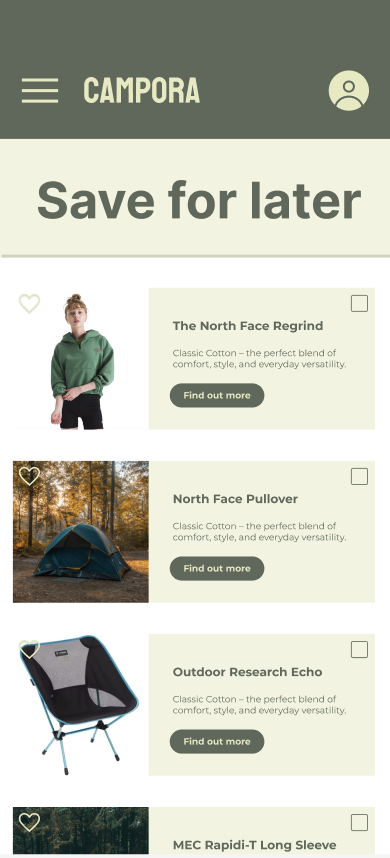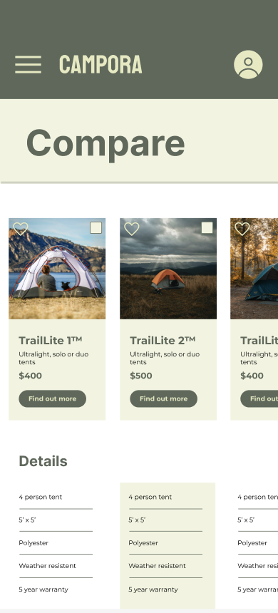 Users are unable to easily compare products, which made it challenging to make informed purchasing decisions, especially when evaluating similar camping gear.