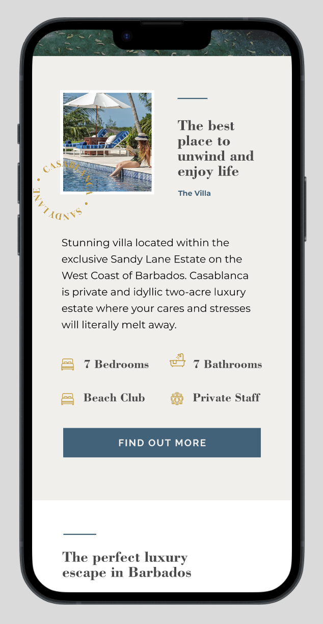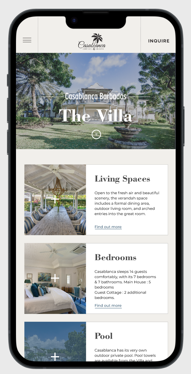 The current website doesn’t fully reflect the villa’s luxury brand, isn’t optimized for mobile-first high-net-worth users, and makes it harder than necessary to book or explore the villa’s unique offerings.