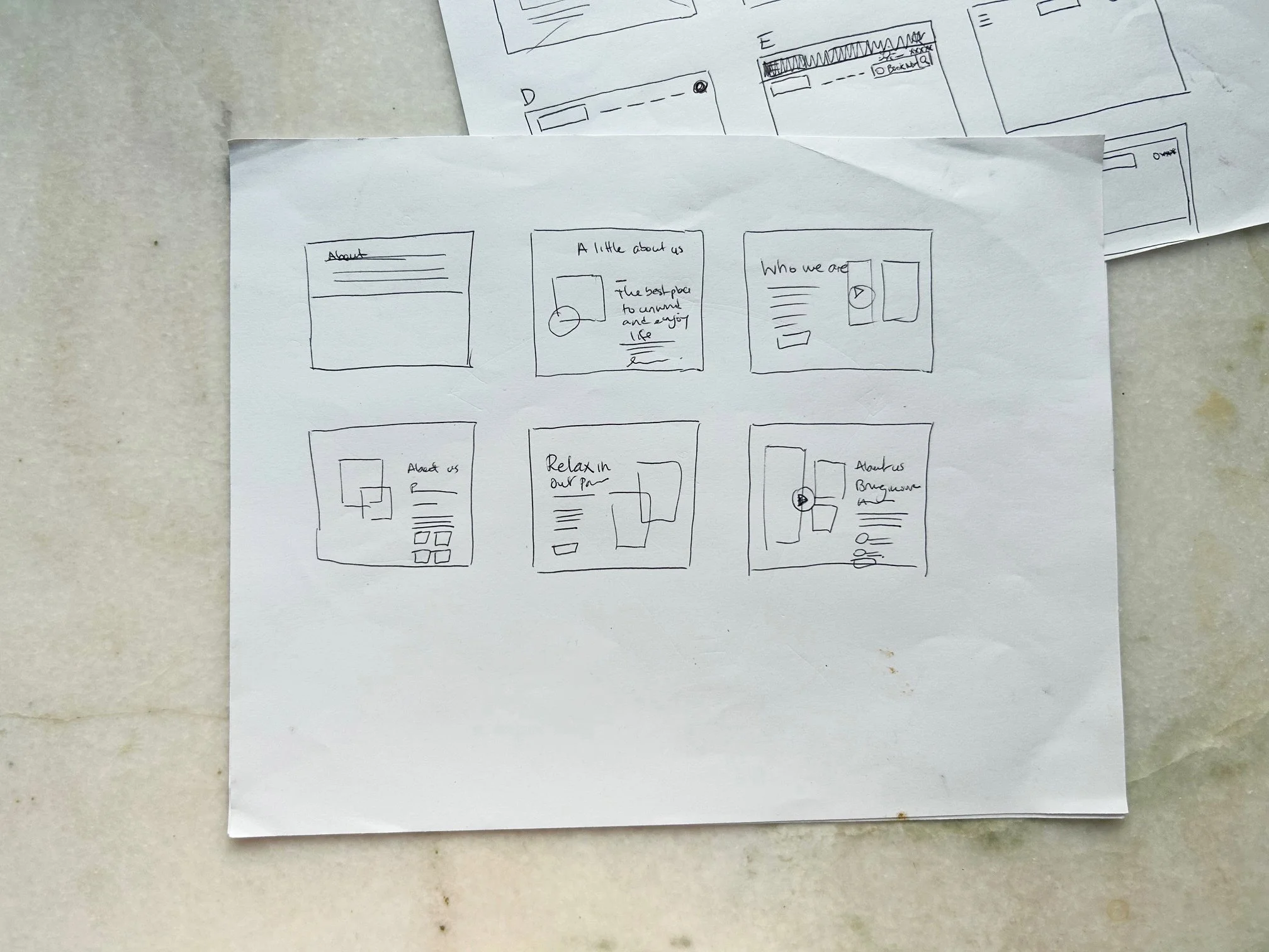 I drafted iterations of each screen on paper. I also started to work on designs for additional screen sizes to make sure the site would be fully responsive.